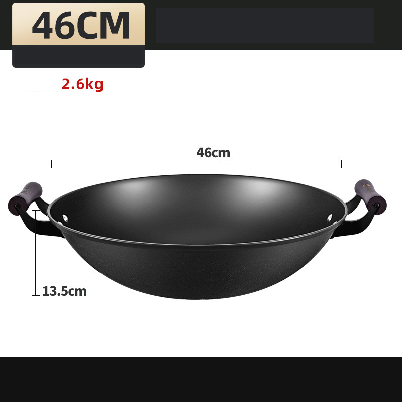 Чугунен Уок с Метален Капак без Покритие и Незалепващо Кръгло Дъно - 46 см