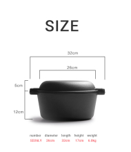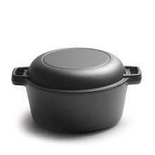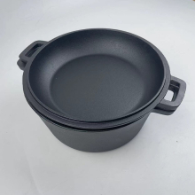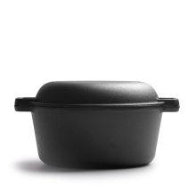 Внесете универсалност и качество във вашата кухня с нашата чугунена тенджера с капак-тиган. Изработена от чист чугун, без примеси, тази тенджера е идеална за приготвяне на разнообразни ястия. Капакът с двойно предназначение може да се използва и като тиган, предоставяйки допълнителна функционалност.