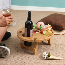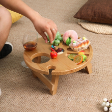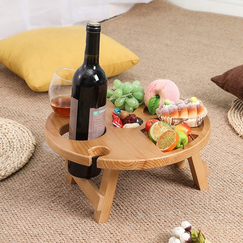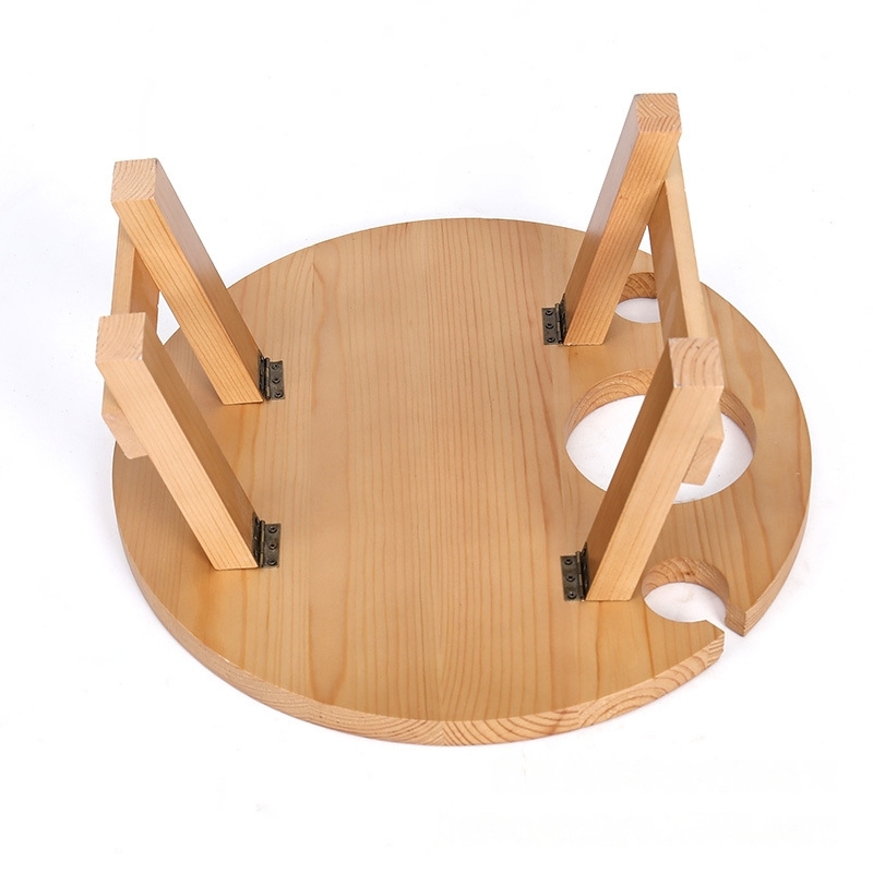 Дървена Масичка за Пикник за 2 Чаши за Вино, Бутилка и Мезета