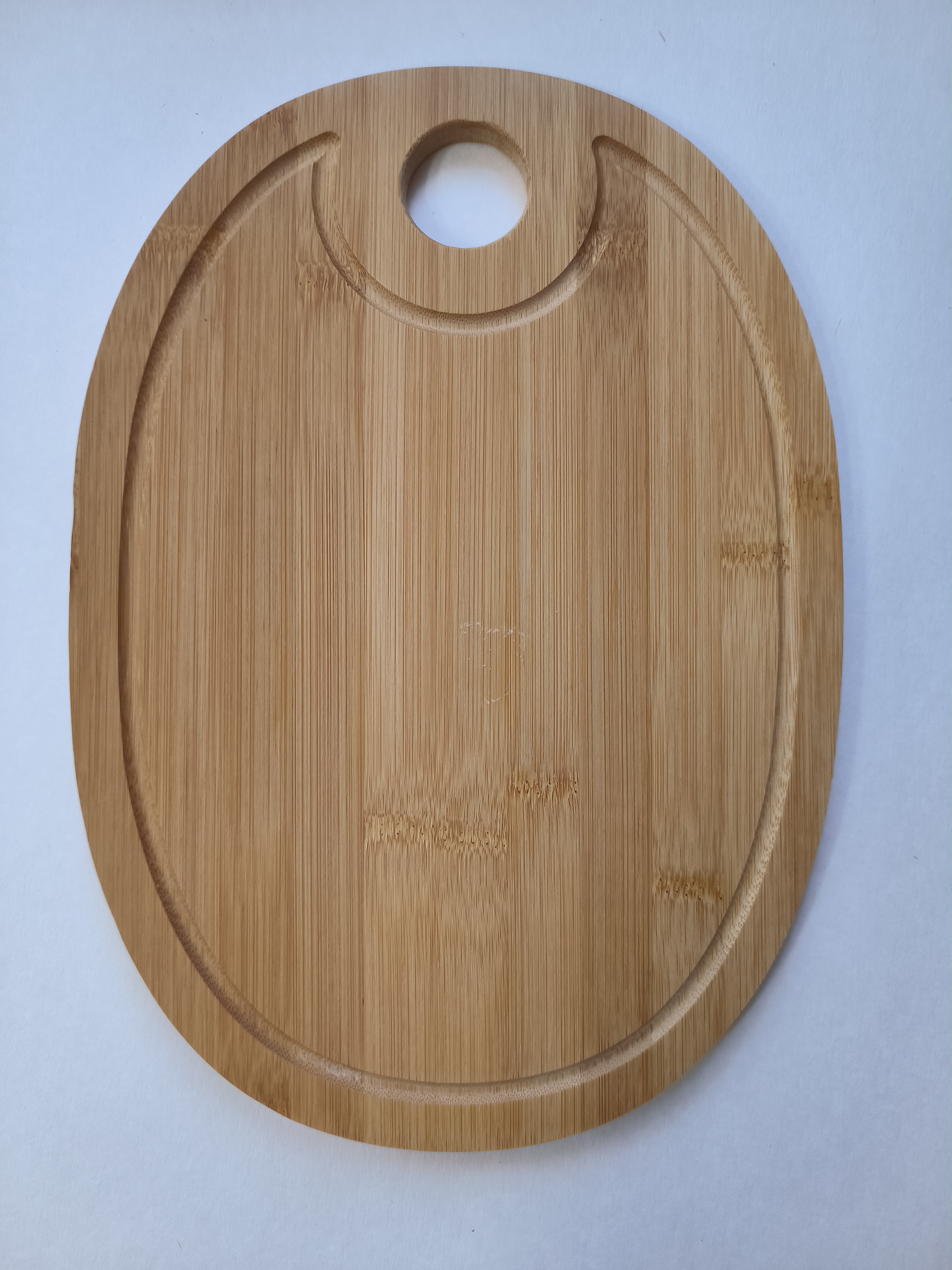 Елегантна елепсовидна бамбукова дъска за рязане с улей и отвор за закачане