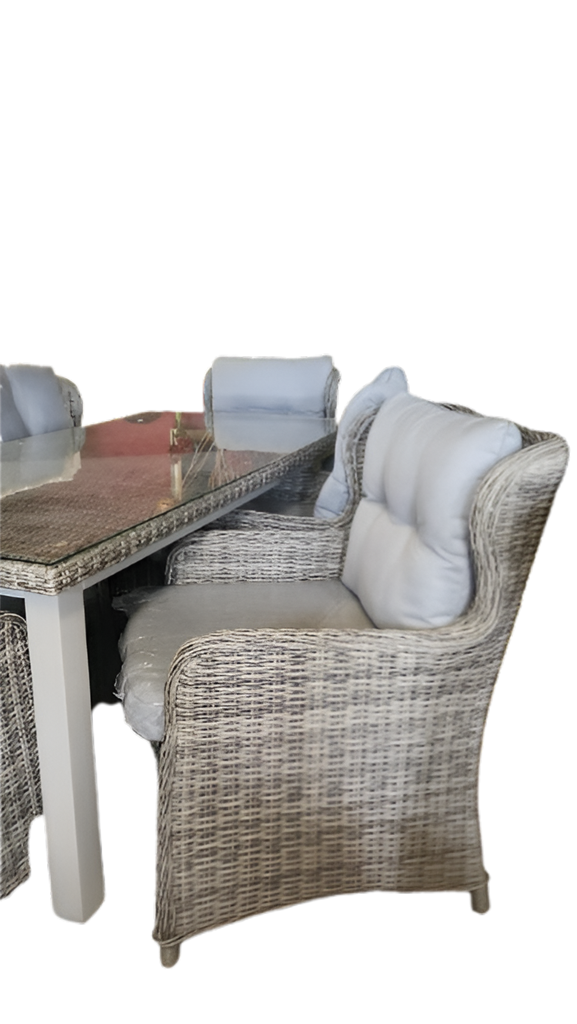 MONTECARLO е проектиран за хора, които ценят здравина, изтънченост и безпроблемна употреба. Алуминиевата основа осигурява лека, но здрава конструкция, ратанът е устойчив на UV и влага, а меките възглавници придават висок комфорт при всяко сядане.