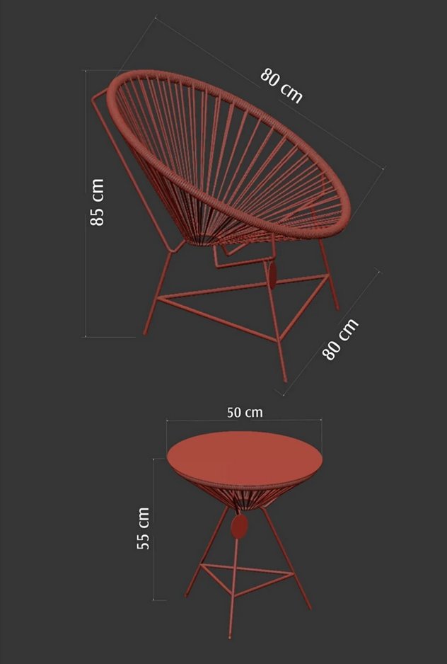 Сетът е ръчно изработен от метал и ПВЦ и стъкло.