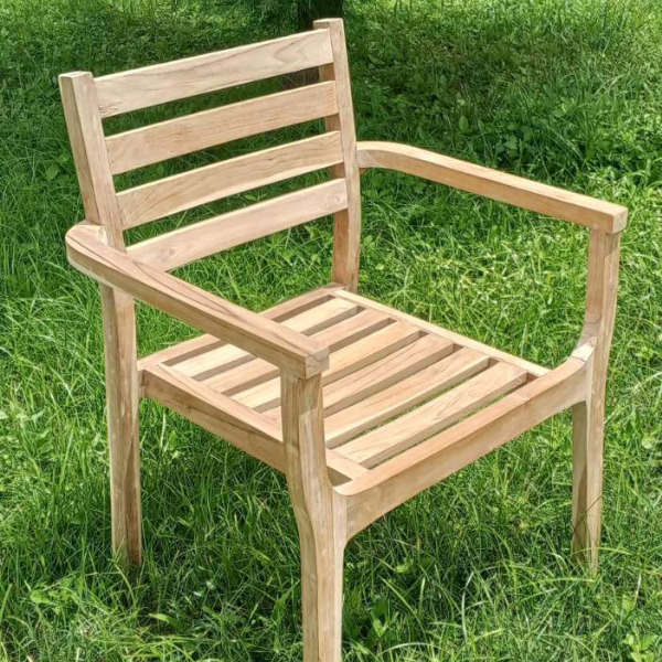 Градински стол от тик KARIMUN предлага отлична устойчивост при ежедневна употреба както на закрито, така и на открито. Благодарение на естествените масла в дървото, материалът запазва своите качества дори при по-висока влажност и излагане на слънце. С времето тикът може да придобие елегантна сребристо-сива патина, която подчертава неговия естествен характер. За запазване на първоначалния цвят е възможна периодична грижа с подходящо тиково масло. Със своята стабилна изработка и отличим дизайн този модел е чудесен избор за хора, които ценят естествени мебели, етно стол и устойчиво външно обзавеждане.