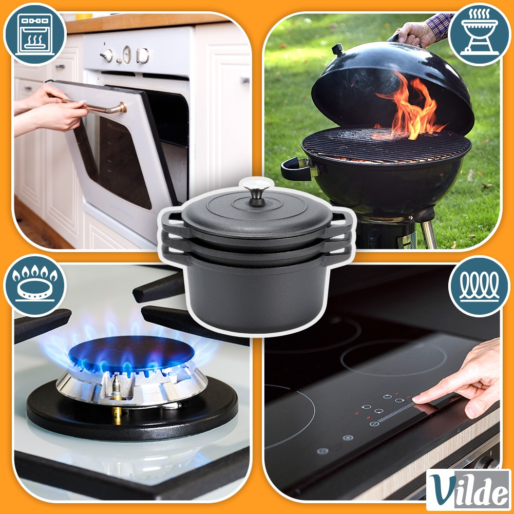 Благодарение на отличното задържане на топлината, тенджери от чугун позволяват равномерно готвене и запазване на естествените аромати на продуктите. Подходящи са за супи, яхнии, печено месо, зеленчуци и дори хляб.