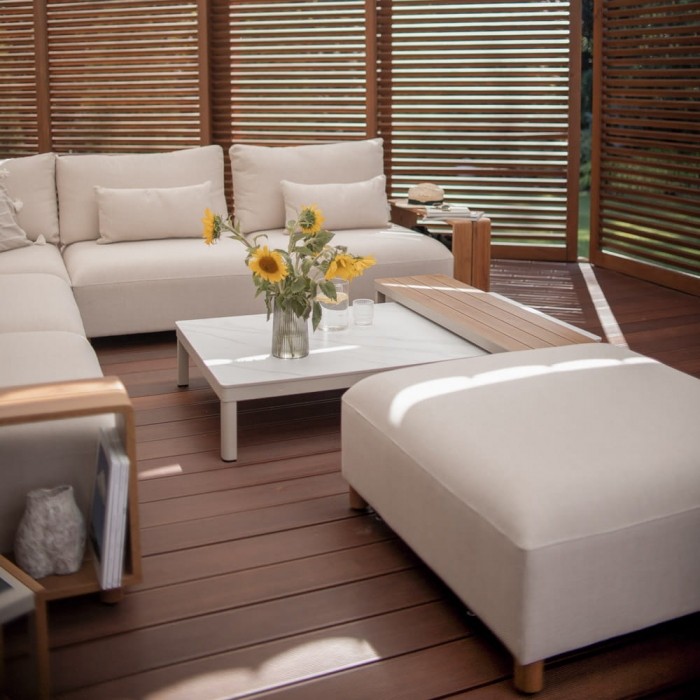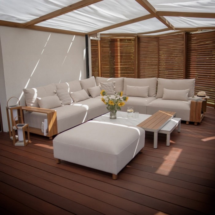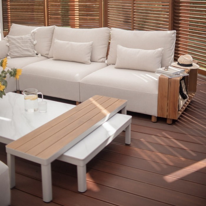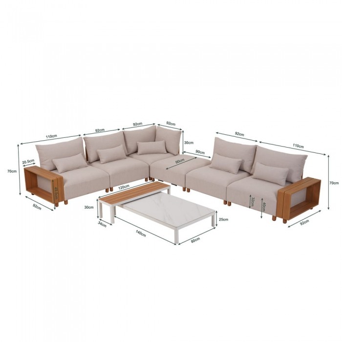 Бежовият цвят и изчистеният дизайн правят комплекта отличен избор за модерни, елегантни и уютни външни пространства.
