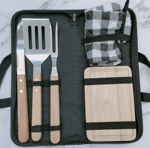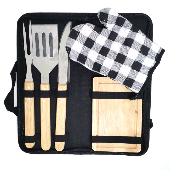 Комплект за барбекю с дървени дръжки и удобен текстилен плик