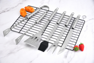 Комплектът е представен в удобна чантичка с цип и дръжки, гарантирайки ви лесно пренасяне и съхранение. Гответе с вдъхновение и комфорт на всяко барбекю с този практичен комплект.
