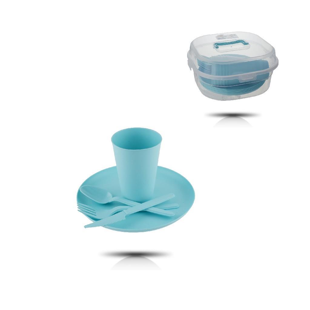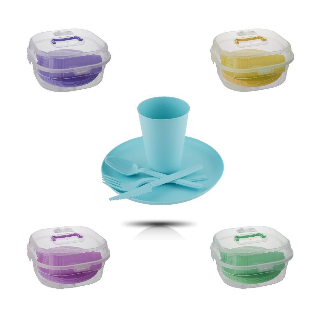 Комплектът е изработен от пластмаса за хранителни продукти и включва: