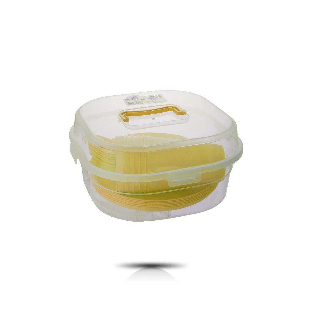 Кутията може да се използва като купа или салатник и разполага с удобна дръжка за пренасяне. Размерите са 23х23 см.