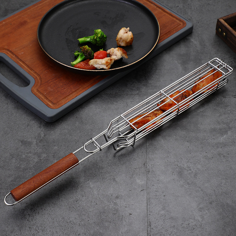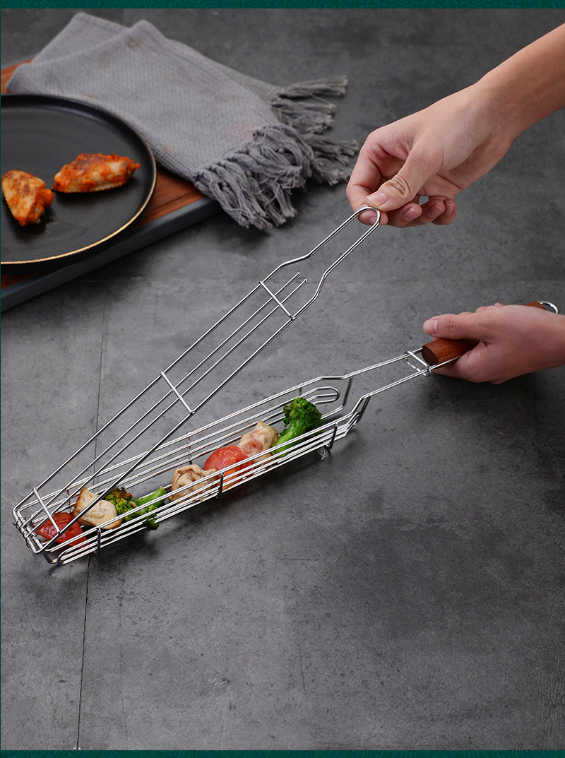 Омръзнало ли ви е храната да залепва за скарата или да се разпада по време на печене? С кошницата за барбекю ще получите равномерно изпечени зеленчуци, месо и морски дарове без излишни усилия! Изработена от устойчива неръждаема стомана и с удобна дървена дръжка, тя осигурява комфорт и надеждност при всяко използване.