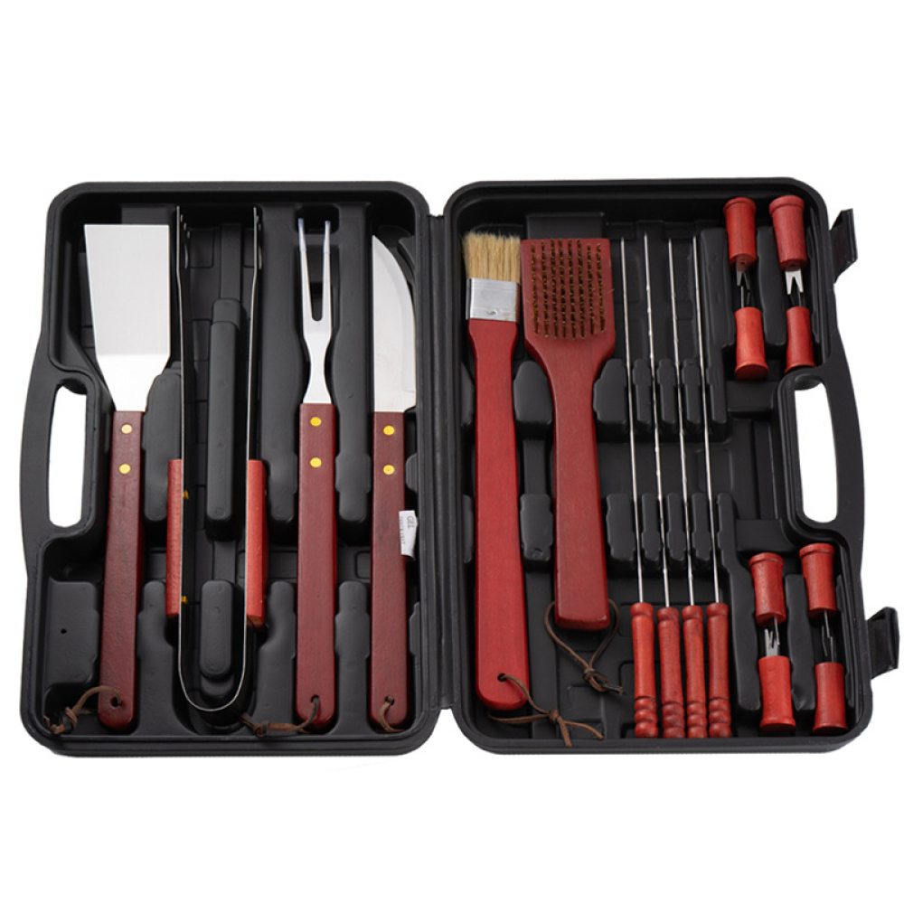 Превърнете всяко барбекю в истинско удоволствие с този комплект от 18 части, събран в удобен и компактен пластмасов куфар. Практичен и стилен, той включва всичко необходимо за майсторско гриловане: