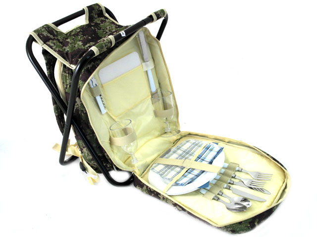 Изберете практичен и функционален комплект за пикник с раница, предоставящ ви всичко необходимо за приятен излет на открито. Този комплект за пикник за двама със сгъваемо столче е идеалният спътник за романтичен ден в природата.