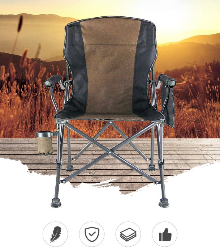 Пренесете комфорта на дома сред природата със сгъваемия туристически стол в черно и кафяво. Идеален за къмпинг, риболов, пикници и плаж, той съчетава практичен дизайн с висока издръжливост и множество удобства за вашия отдих навън.