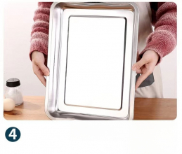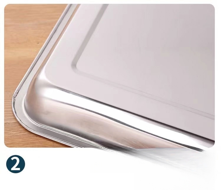 С дебелина от 0,7 мм, тази тава предоставя дълготрайна употреба и равномерно разпределение на топлината. Независимо дали я използвате за мариноване на месо и зеленчуци, за печене на любимите ви ястия или за съхранение на готови ястия, тя винаги ще ви служи с надеждност.