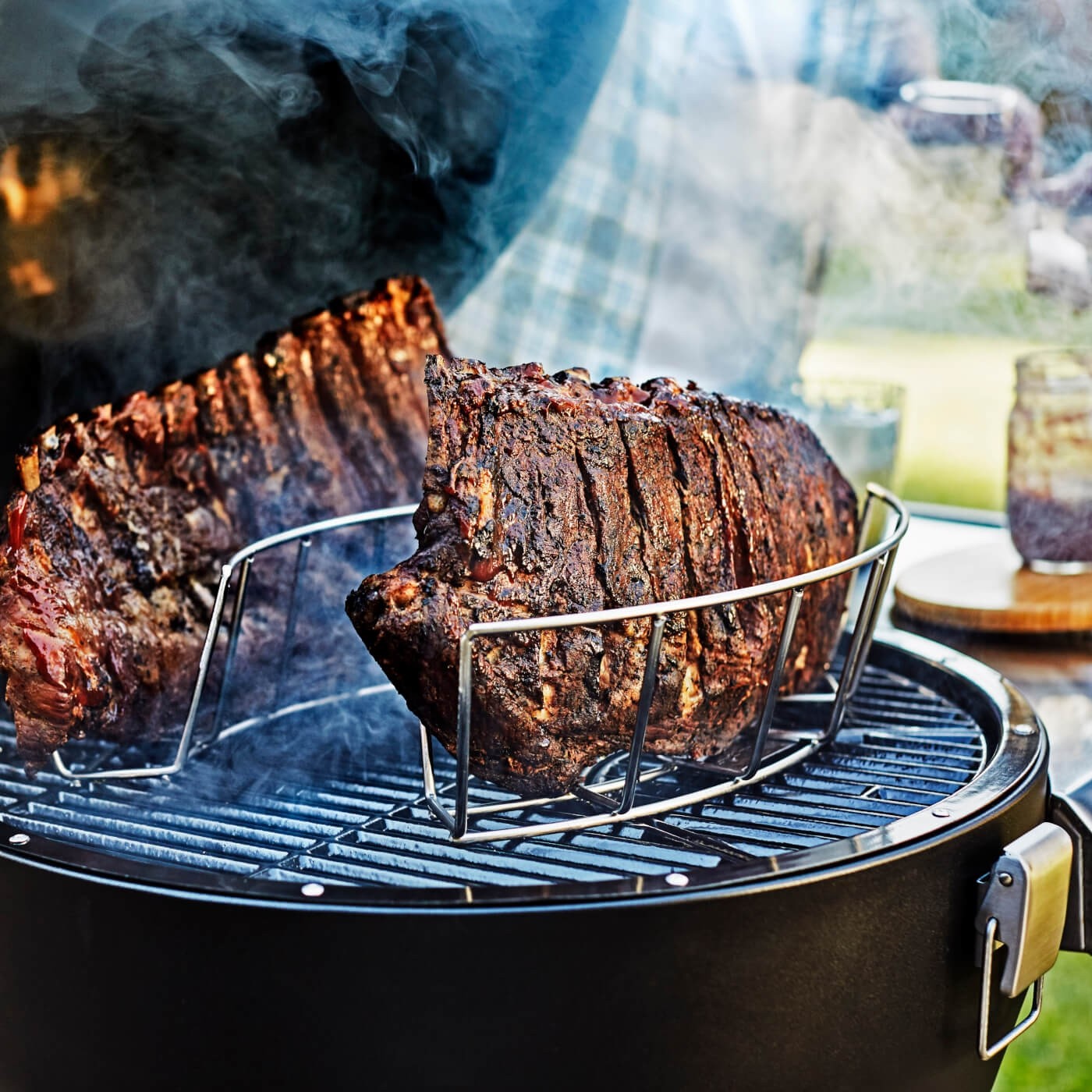 С диаметър от 52 см, чугунена решетка с емайлирано покритие и двойни стени за контрол на температурата, това барбекю е перфектното решение за опушване, печене и готвене на храна на открито.