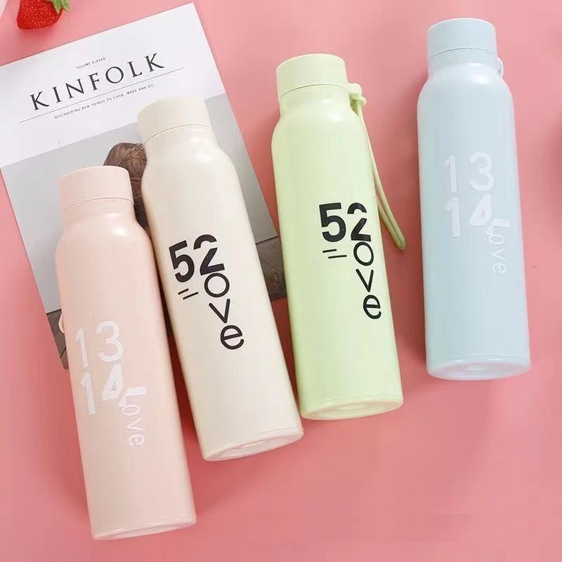 Стъклена Бутилка за Вода с Пластмасово Покритие 400 мл "Love" - Праскова