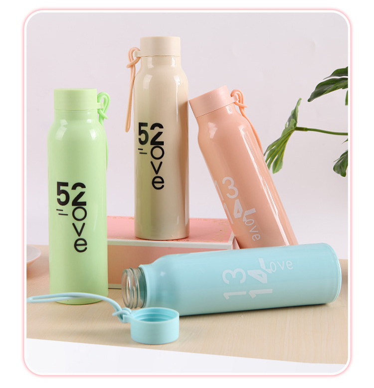 Стъклена Бутилка с Пластмасово Покритие "Love" - 400 мл, Зелена